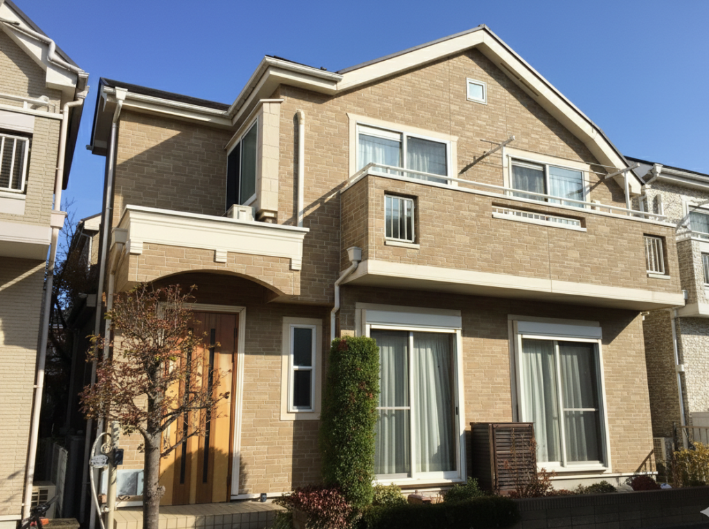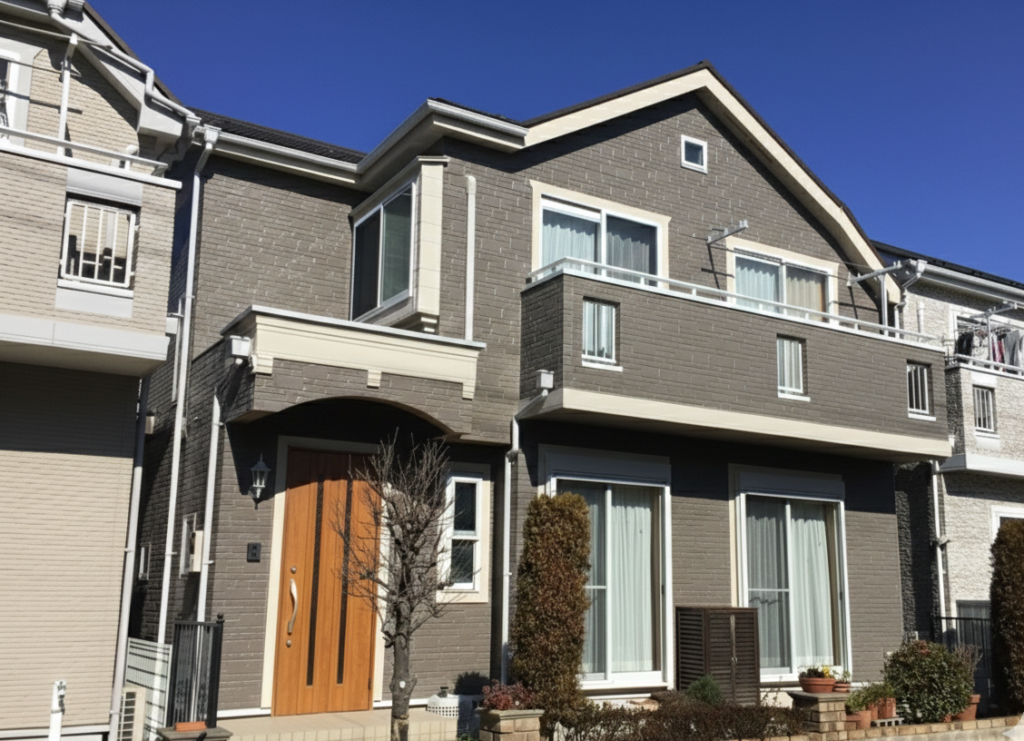 | 使用色 | 外壁:モカベージュ(PP-19) アクセントカラー:カシミアミルクティー(PP-12) 屋根:ミッドナイトブラウン(PP-49) |